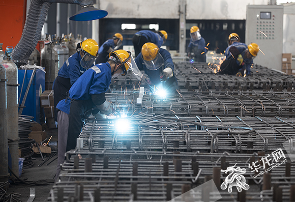 在軌道4號線二期軌道板預(yù)制場,生產(chǎn)車間有鋼筋加工區(qū)、混凝土澆筑區(qū)等12個工作區(qū)域,但施工人員僅20余名。工人們操作機(jī)械有序作業(yè),一天可預(yù)制軌道板70塊。
